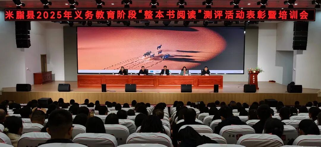 3月30日,米脂县2025年义务教育阶段“整本书阅读”测评活动表彰暨培训会议在第四中学报告厅召开。县教研室、县新华书店负责人,全县义务教育阶段学校业务副校长、教导主任及全体语文教师参加了会议。