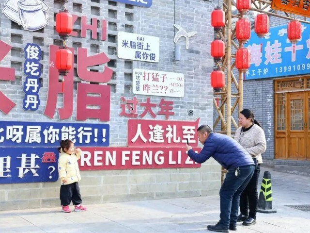在古城十字街,一面“方言墙”成了游客打卡的必到之地。“扛硬”“足劲”“水圪灵灵”“俊个丹丹”……这些带着黄土高原泥土气息的方言,被写在红底白字的牌子上,搭配着红灯笼、剪纸等传统元素,诙谐生动。“这里兼具现代与历史感,轻触带有陕北风俗古建筑的同时还能悠闲地品上一杯咖啡,感受本地文化的温度。”来自内蒙古的游客吕美芳说:“这些方言太有趣了,让我对陕北文化有了更鲜活的认识。”